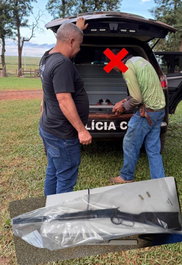 A arma foi apreendida e será encaminhada para perícia. O suspeito permanece à disposição da Justiça.