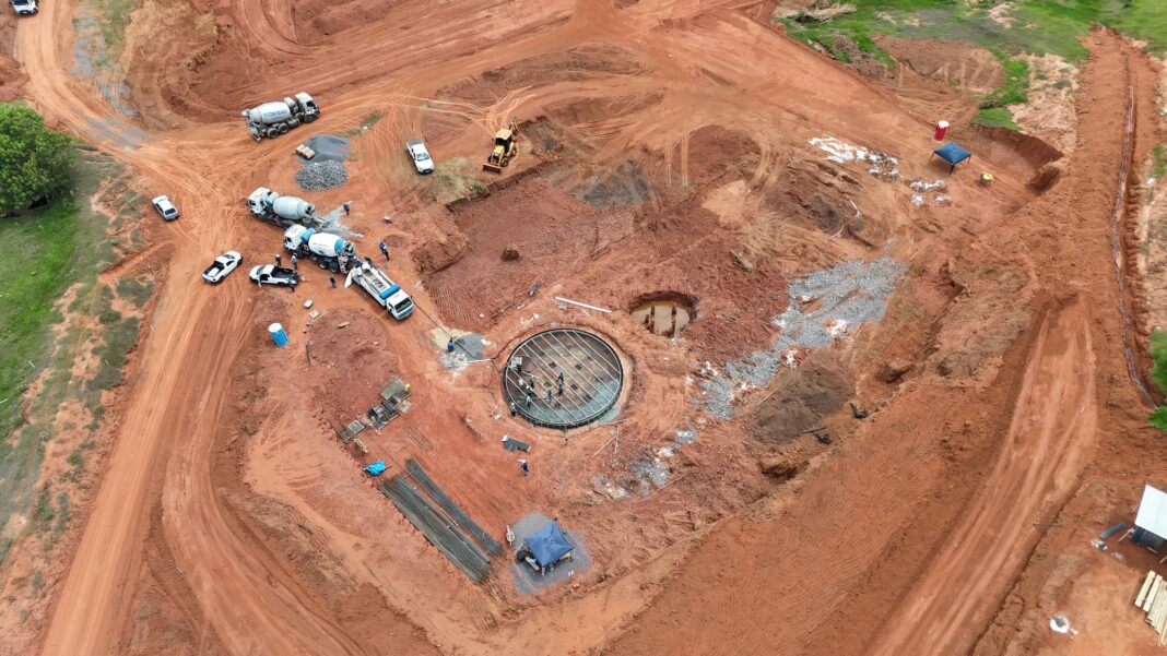 A obra da Estação de Tratamento de Esgoto (ETE) de Itaquiraí avançou mais uma etapa neste sábado, dia 14, com a concretagem da base que irá sustentar a estrutura responsável por receber e tratar o esgoto da área urbana do município.